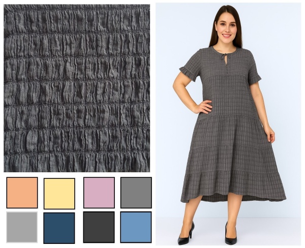 Soft handfeel, high elasticity, textured surface, good recovery, natural drape, comfortable for daily wear. |